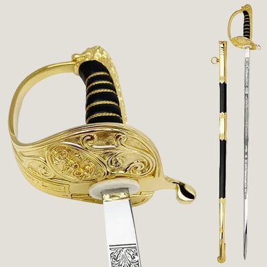Sabel m/1915 för officer och specilistofficer vid Flottan. Sabelns kavel (handtag) är tillverkad av trä omlindat med svart läder och med tvinnad mässingstråd samt hel fästkappa i mässing som övergår i ett lejonhuvud. Parerplåten är i mässing och prydd med Flottans emblem och sjömotiv. Parerplåtens vänstra del har en fällbart sabellåsning. Klingan är tillverkad av blank polerad stål och är 76 cm lång, Klingan är etsad på båda sidor med text "Konungen" på vänster sida och "Fäderneslandet" på höger sida.